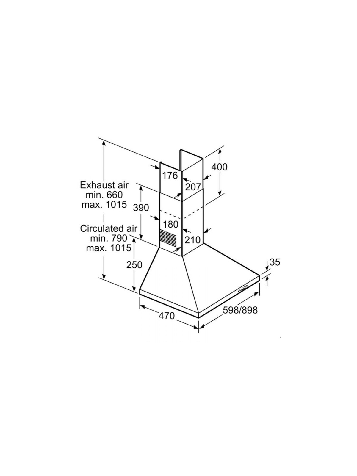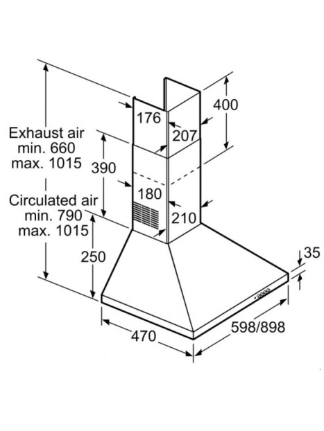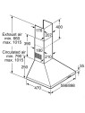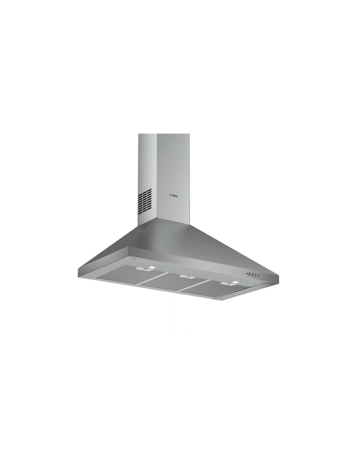Hotte Pyramidale BOSCH - Largeur: 90 cm - Volume d'aspiration: 380 m3/h - 3 Niveaux de Vitesses - Classe d'efficacité énergétique: D - Puissance totale des moteurs: 125 Watts - Niveau de puissance sonore: 70dB - Matériau du filtre à graisses: Aluminium lavable - Consommation dénergie annuelle: 72,5 kWh / an - Éclairage du plan de travail: 2 x LED 5W - Dimensions: 790-1015 x 898 x 470 mm - Poids: 9.1 kg - Couleur: Inox - Garantie: 3 ans