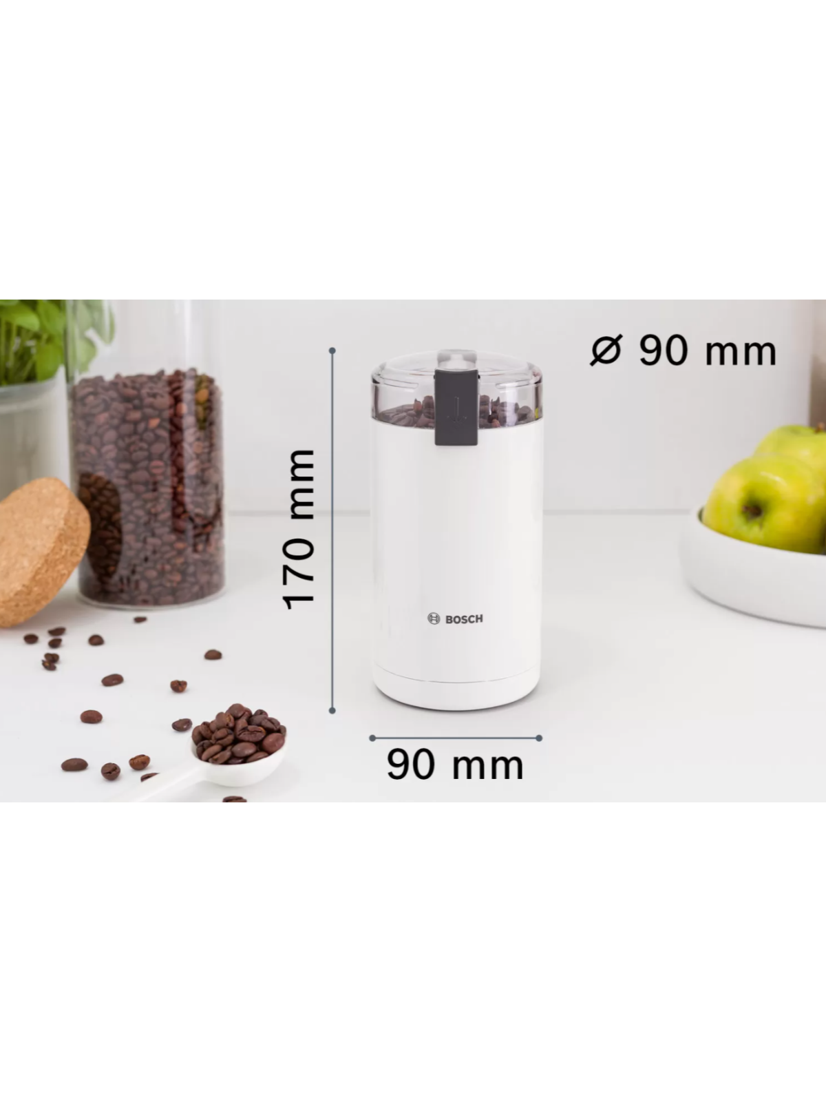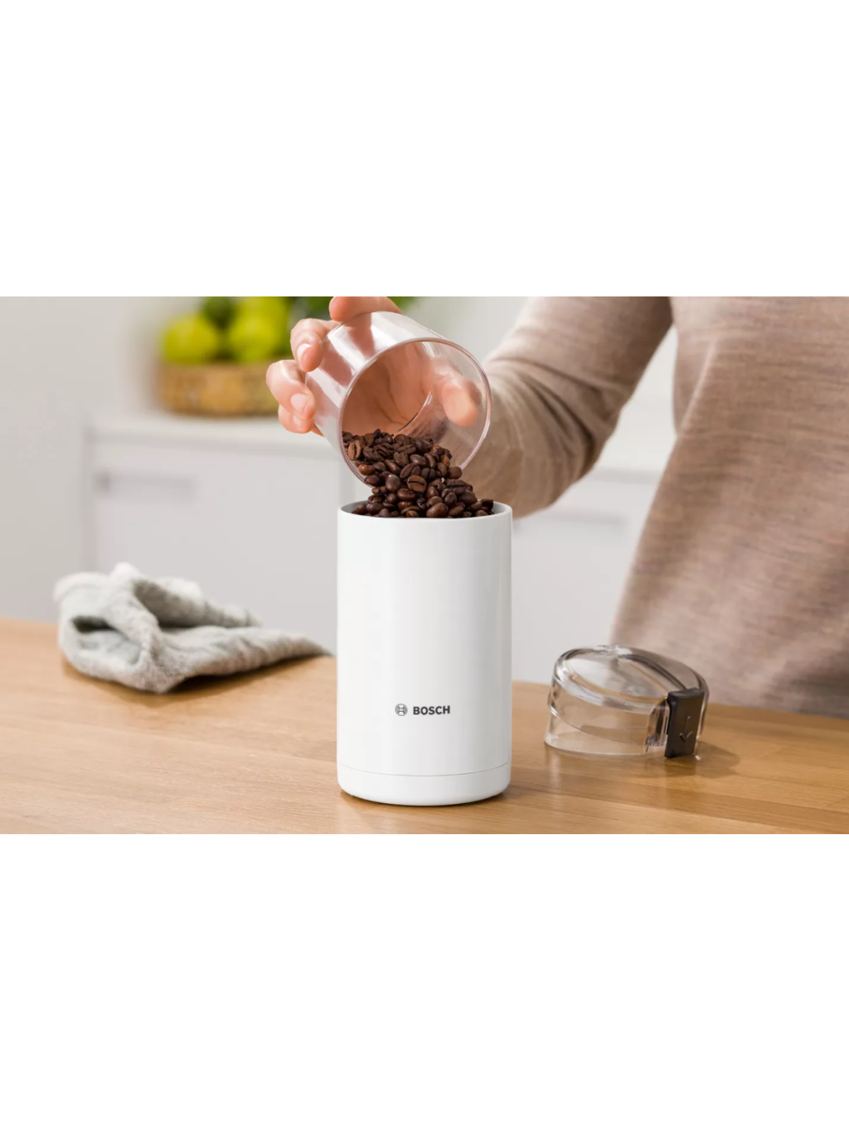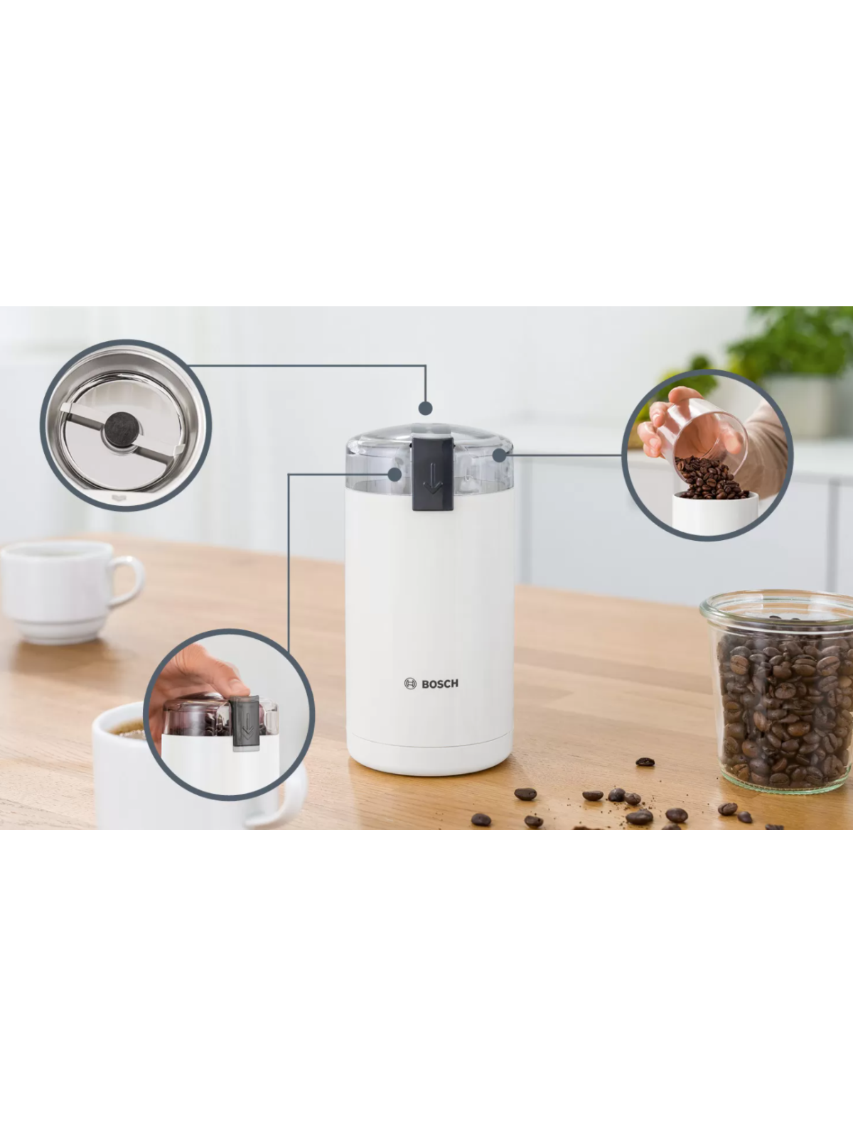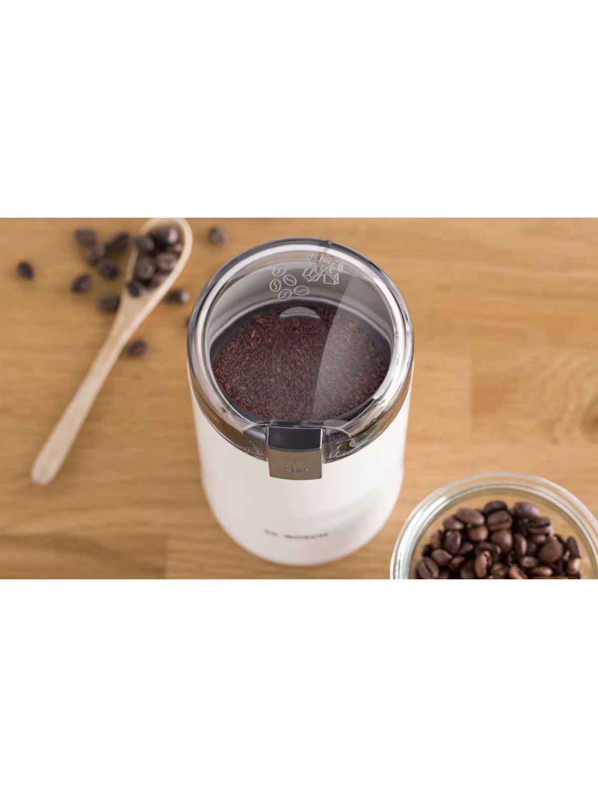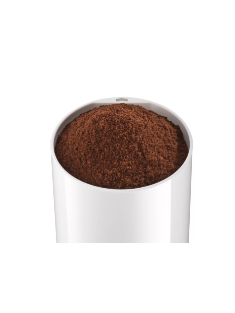 Moulin À Café BOSCH - Puissance: 180 Watts - Capacité de grains: 75 gr - Performance pour moudre finement: 150g/min - Fonction vitesse par pulsion - Fonctionne seulement avec couvercle - Lame et bac pour poudre: en acier inoxydable - Couleur: Blanc - Garantie: 2 ans