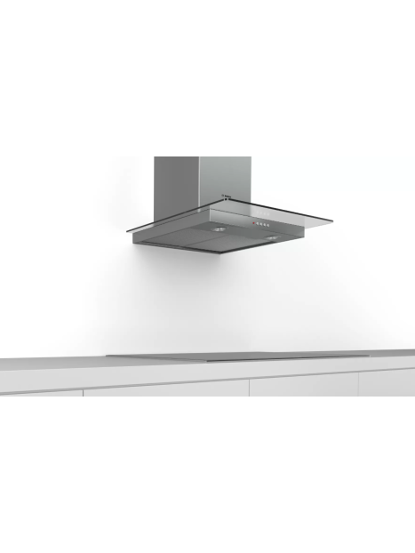 Hotte Décorative BOSCH - Largeur: 60 cm - Puissance moteur: 250 Watts - Puissance lampe: 2 Watts - Débit d'aspiration d'air: 620-700m3/h - 3 vitesses - Classe énergétique: A++ - Consommation d'énergie: 83,3 kWh/an - Filtre à graisses: Aluminium lavable - Dimensions: H x L x P: 730-890/730-1000 x 598 x 520 mm - Couleur: Inox - Garantie : 3ans