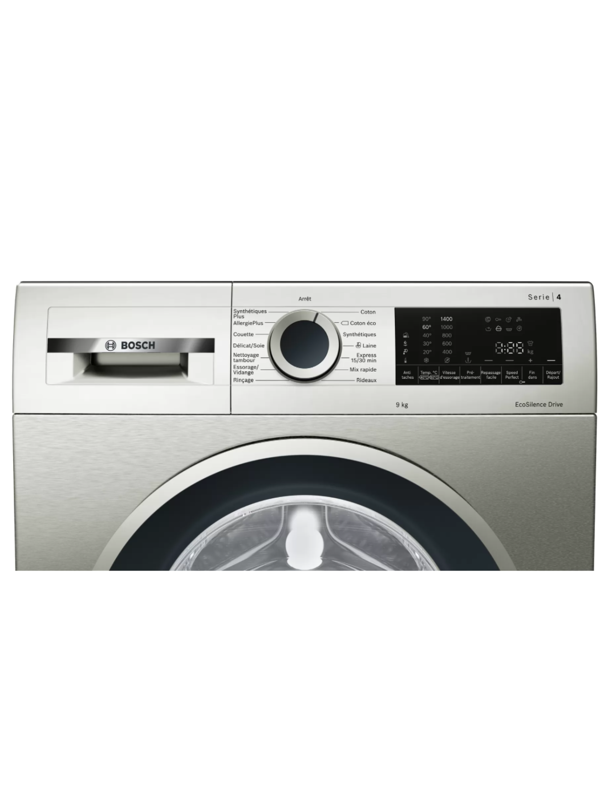 Lave-linge à chargement frontal - Capacité: 9 kg - Vitesse d'essorage: 1400 tours/min - 14 programmes - Classe énergétique: A+++ - VarioPDrum - SpeedPerfect - EcoSilence Drive efficace et extra silencieux - VarioPerfect - Affichage numérique - Niveau sonore au lavage: 51 dB(A) - Niveau sonore à l'essorage: 75 dB(A) - Rajout de linge - Afficheur digital de temps restant - Système anti-balourd - Détection de mousse - Anti-débordement - Sécurité-enfants - Dimensions: 845 x 597 x 588 mm - Poids: 68.6 Kg - Couleur Argent Inox