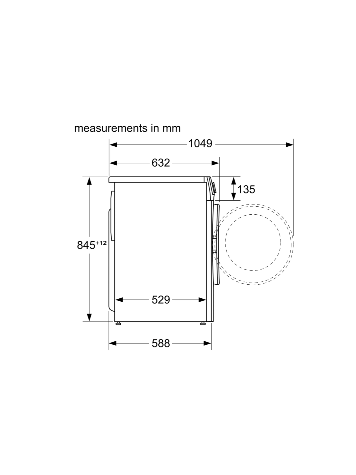 | Profondeur porte ouverte à 90° | 1 049 mm |