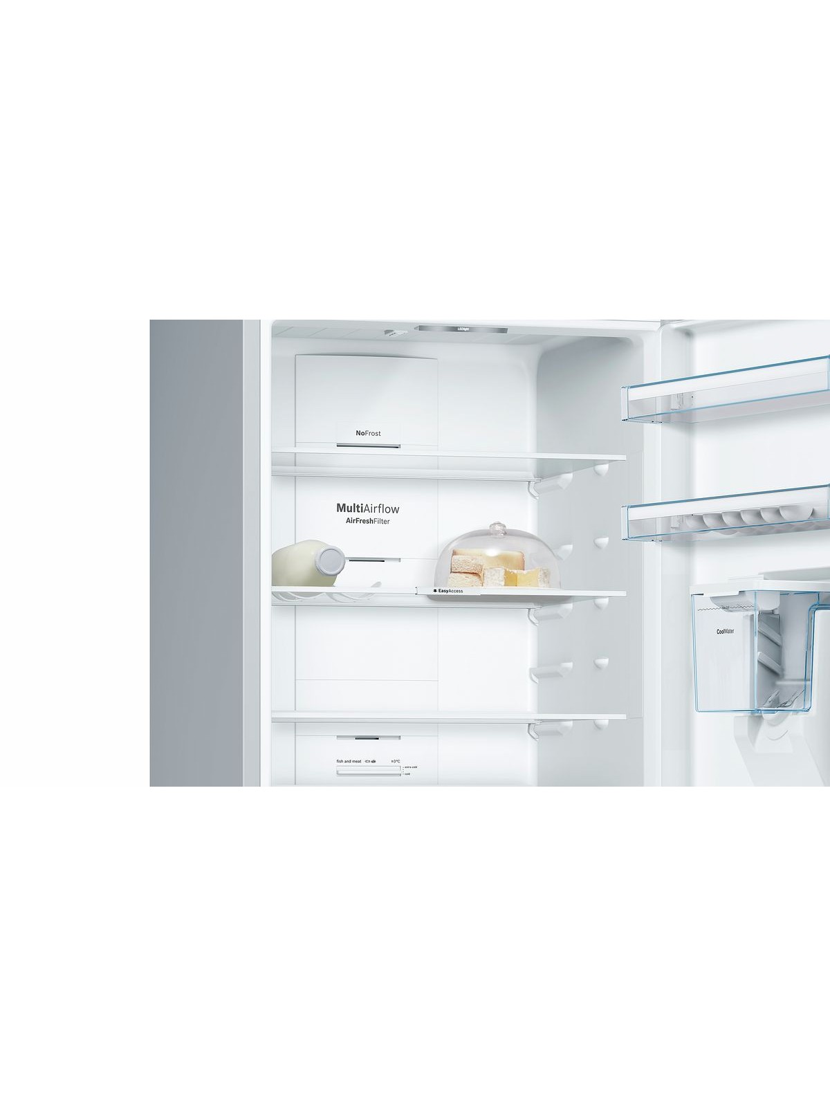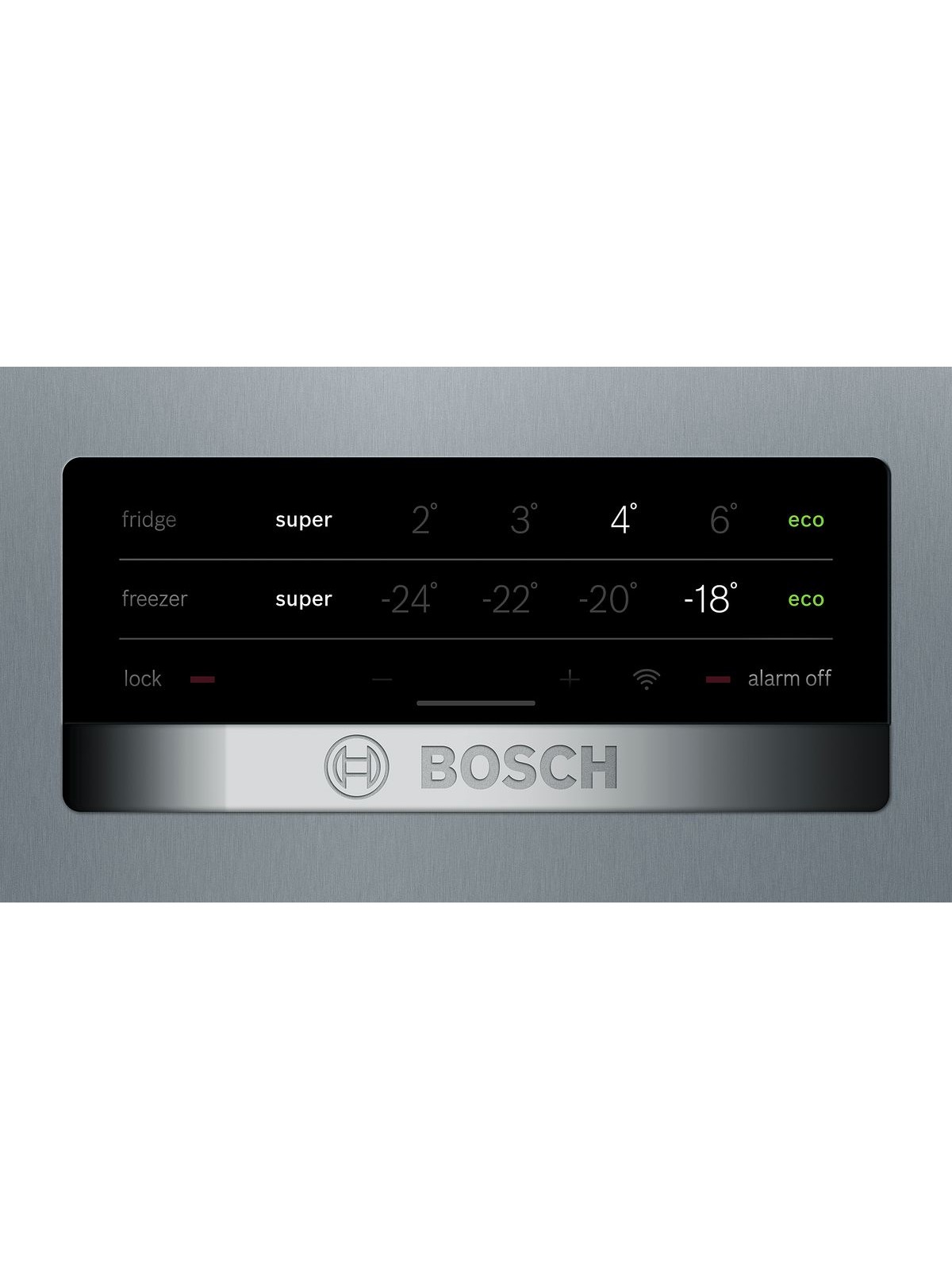Commutateur de supercongél., Commutateur de superréfrig., Fonction d'alarme dans la zone congélation, Indic. de températ. de congél., Indic. de températ. de refrig., Sign. d'avert. dérang. congél., Sign.d'avert.porte congél.ouv.