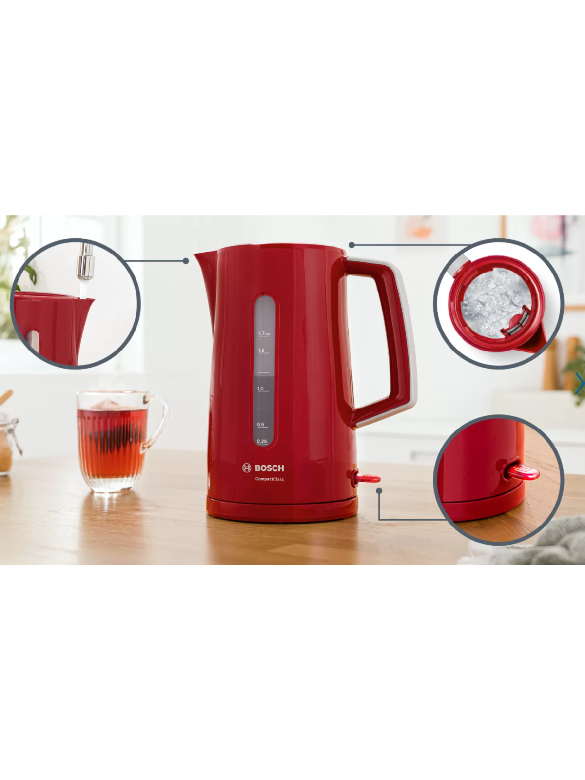 BOUILLOIRE SANS FIL BOSCH TWK3A014 2400W 1.7L - ROUGE