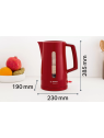 Capacité: 1.7L - Puissance: 2400W - Retation: 360° - Niveau d'eau visible - Remplissage facile de la bouilloire par le bec verseur - Filtre anti-tartre plastique - Filtre anti-calcaire amovible - Sécurité de verrouillage du couvercle - Sécurité de surchauffe - Lift-Switch-Off - Arrêt automatique à ébullition, à l'ouverture du couvercle et lors du soulèvement du socle - Fond chauffant en inox avec résistance cachée - Enrouleur de cordon - Dimensions: 28.5 x 19 x 20.3 cm - Couleur: Rouge - Garantie: 1 an