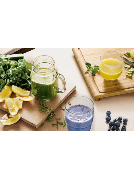 - Visse haute résistance en Tritan pour une extraction de toutes sortes de légumes, fruits, noix et fruits congelés.
