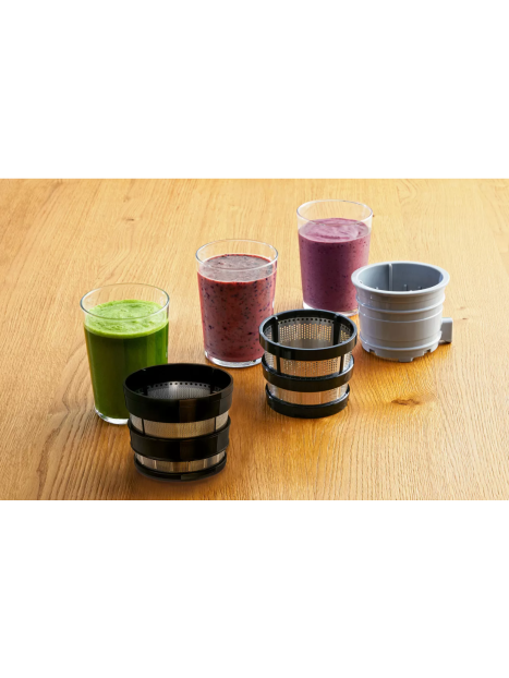 - 3 filtres : tamis trous fins (jus), tamis gros trous (smoothies) et sorbet.