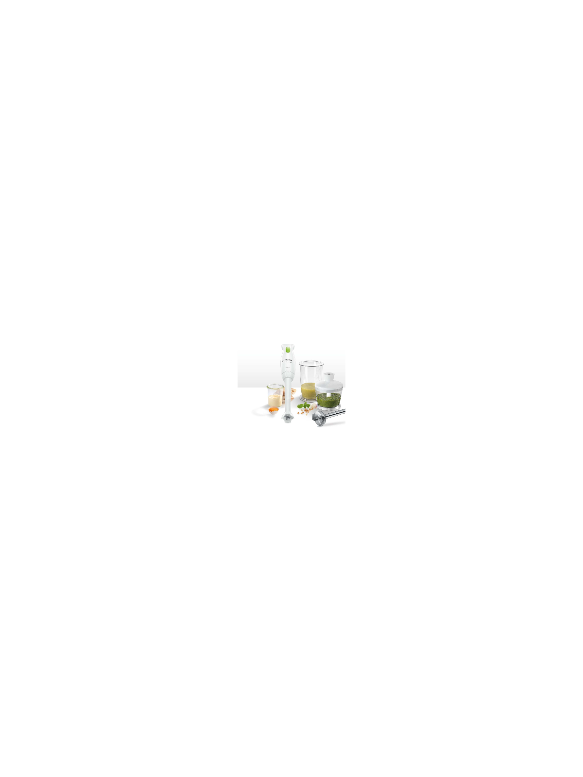 2 x couvercle, 1 x shaker/gobelet, 1 x mixeur-plongeur en acier inox, 1 x broyeur universel